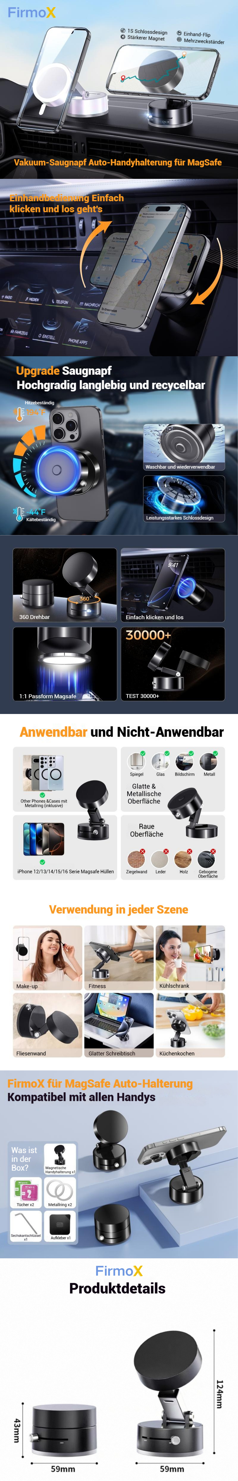 FirmoX Verbesserter magnetischer Telefonhalter, 360 ° -Drehung, starker Magnet, faltbares und tragbares Design, perfekt für Autos, Glas, Fitnessstudios und andere glatte Oberflächen